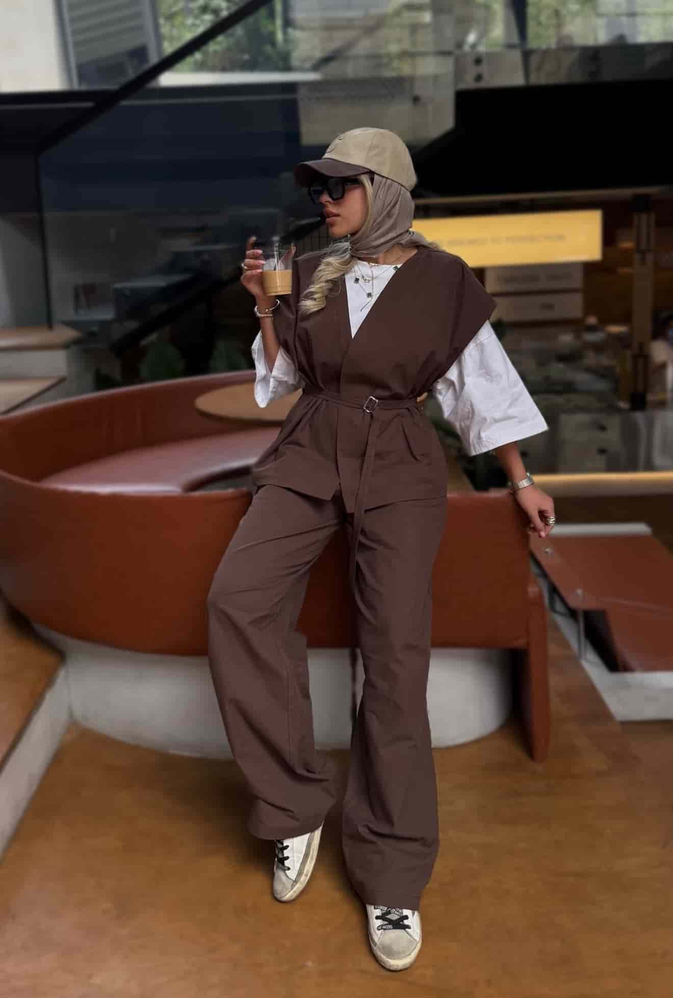 ست پانچو شلوار میلا قهوه ای
