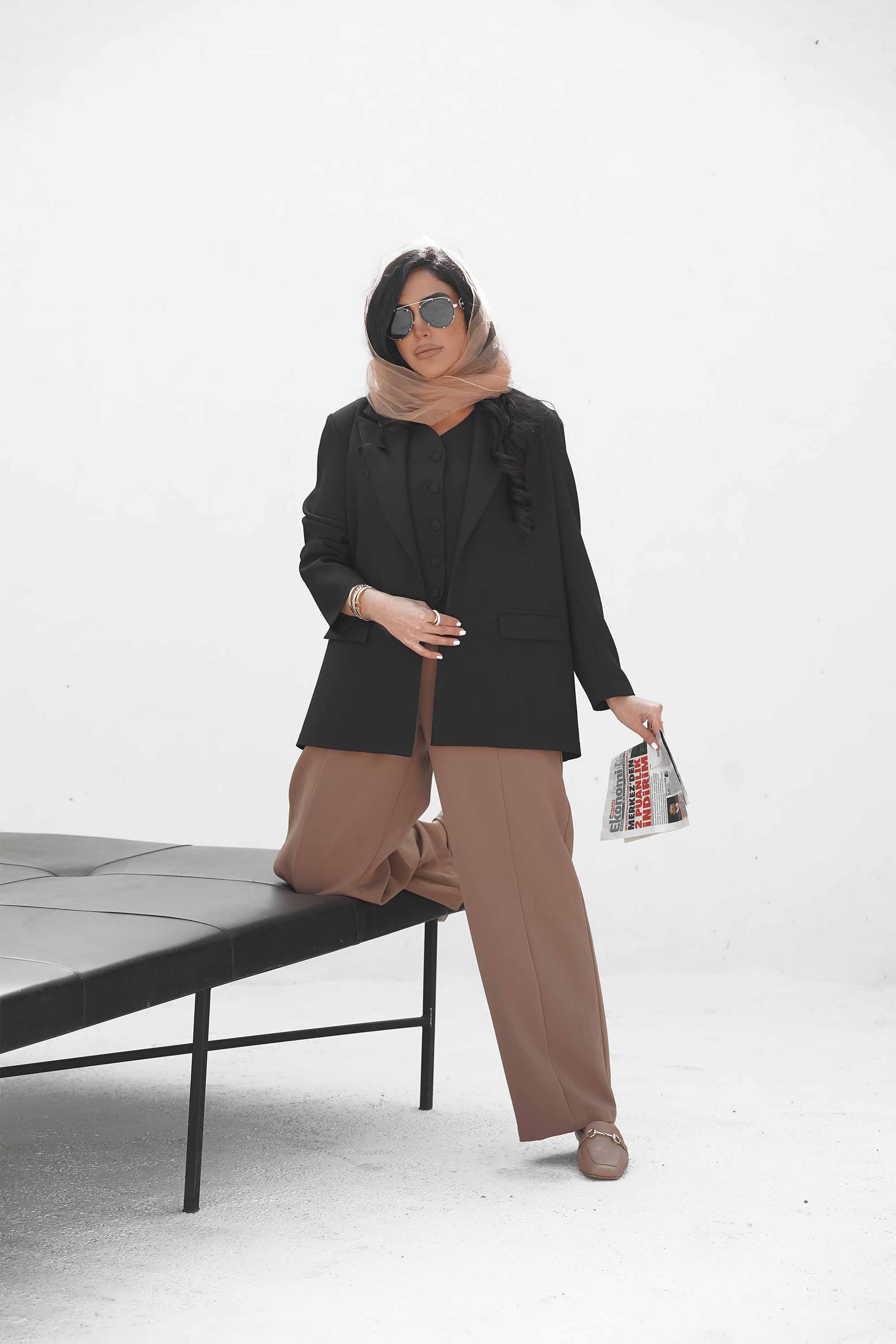 ست پانچو شلوار میلا قهوه ای